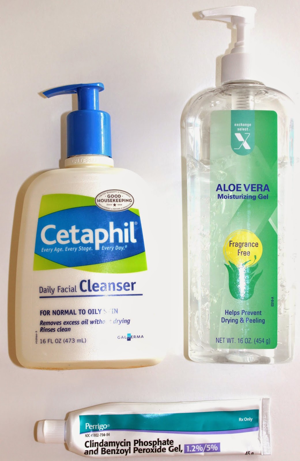 During the Fall and Winter, I use both my ‘Normal to Oily Skin Routine’ trio and my ‘Normal to Dry Skin Routine’ trio. In the mornings I follow the above steps for my ‘Normal to Oily Skin Routine’ and in the evenings before bed, I use my ‘Normal to Dry Skin Routine’ trio. For my ‘Normal to Dry Skin Routine’ trio, I wash my face with Cetaphil daily facial cleanser and rinse with cool water to seal my pores, dab my face with a towel (wiping your face will cause your skin to become irritated and old skin particles will be pushed into your pores creating more acne), apply Clindamycin product such as ‘Duac’, let face dry, and apply my lotion for sensitive skin- Vanicream. Vanicream is used on acne prone skin, sensitive skin, and Eczema. This lotion goes on very heavy, so I use it as my night cream to keep my skin moisturized during the colder, more dry months of the year.
